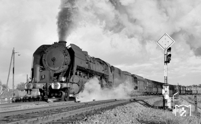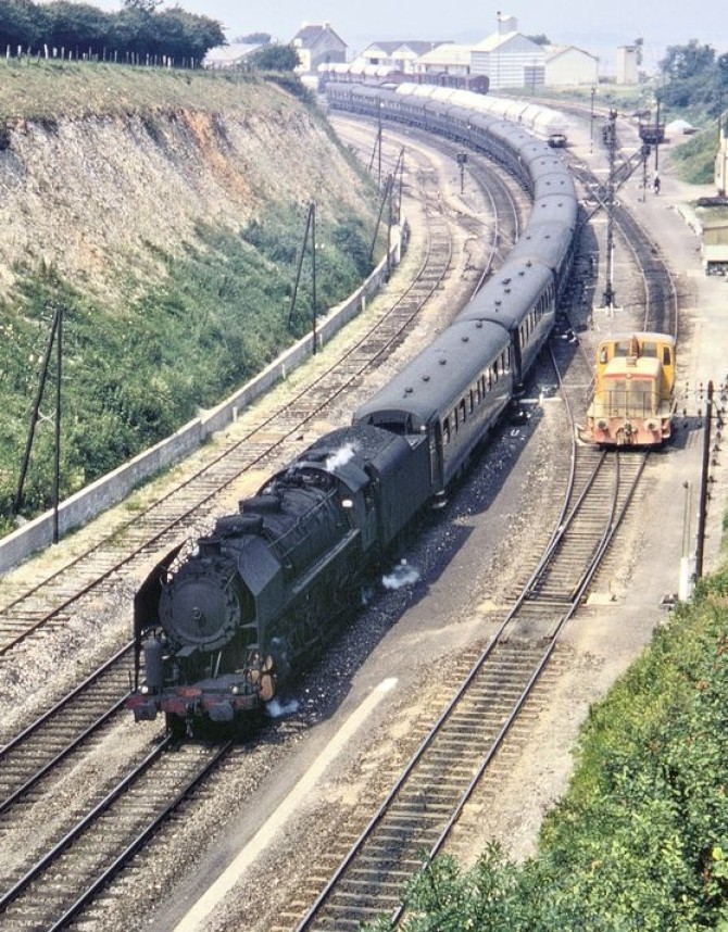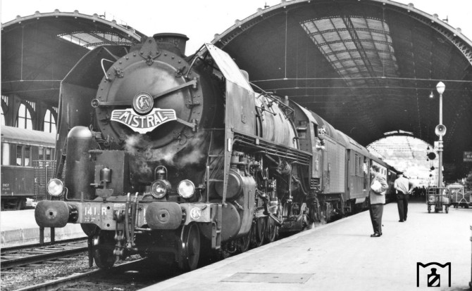 Die letztgebaute Lok, die 141.R.1340 durchfährt mit einem Schnellzug 1968 den Bahnhof Nantes im Westen Frankreichs. Copyright: Alan Orchand/ Slg. Eisenbahnstiftung